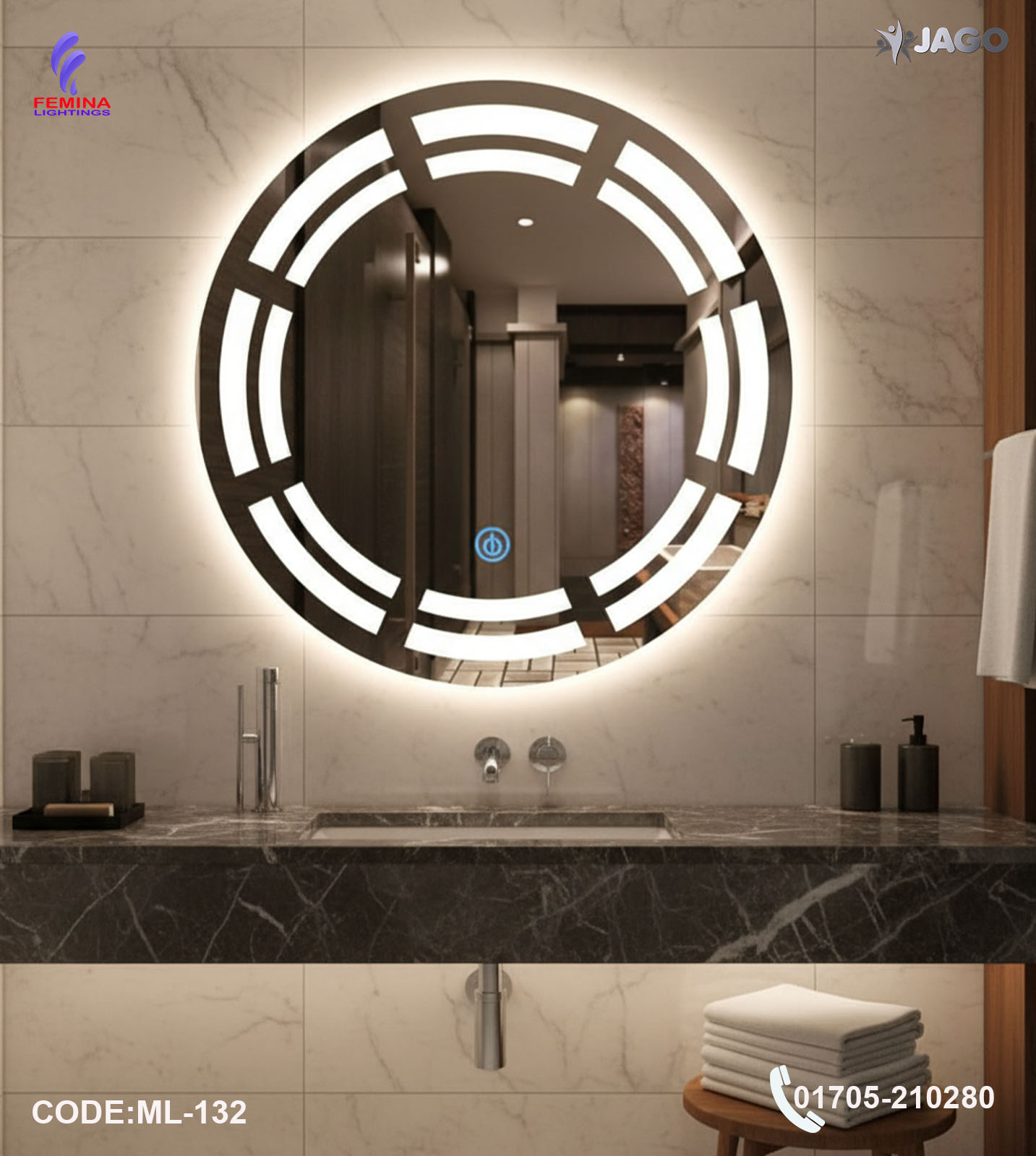 If you are searching for a premium LED mirror light in Bangladesh, a 24/24 inch bathroom mirror light, or a luxury crystal LED mirror light, this model from Femina Lightings is the perfect combination of elegance, functionality, and durability for modern living spaces.