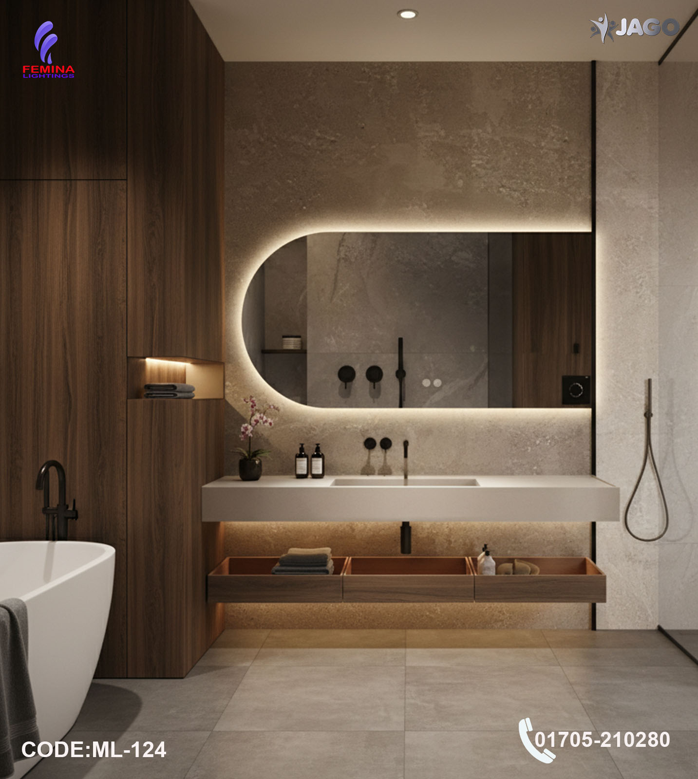 If you are searching for a premium LED mirror light in Bangladesh, a 24/36 inch bathroom mirror light, or a luxury crystal LED mirror light, this model from Femina Lightings is the perfect combination of elegance, functionality, and durability for modern living spaces.