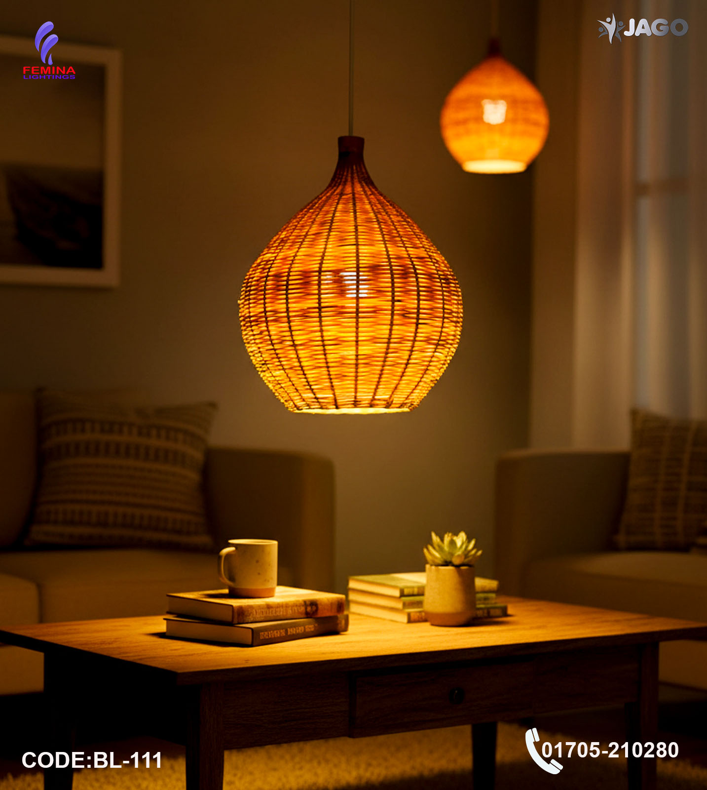 At Femina Lightings, we focus on providing premium decorative lighting solutions that combine style, quality, and functionality. This bamboo pendant light is an excellent choice for homeowners, interior designers, and commercial spaces looking for unique natural lighting fixtures.