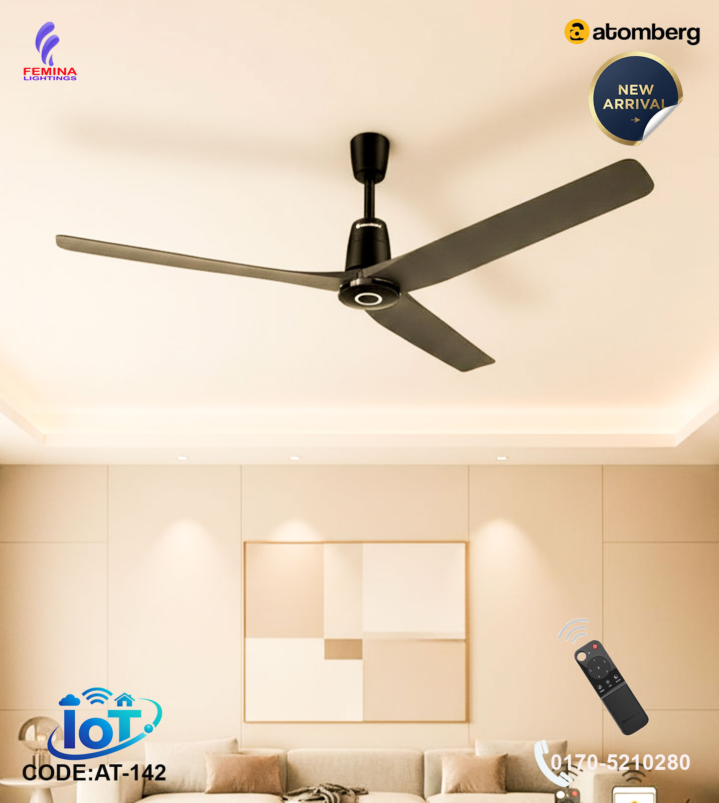Powered by an advanced Brushless DC (BLDC) motor, this fan consumes only 41W at maximum speed, significantly reducing electricity costs compared to conventional ceiling fans. With an impressive air delivery of 250 CMM and a speed of 300 RPM, it keeps your room cool and evenly ventilated.