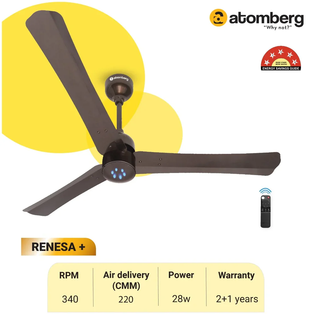 With silent operation, zero motor heating, and stable performance even at low voltage (140–285V), the Atomberg Renesa+ is perfect for living rooms, dining areas, and bedrooms where comfort and elegance matter most.