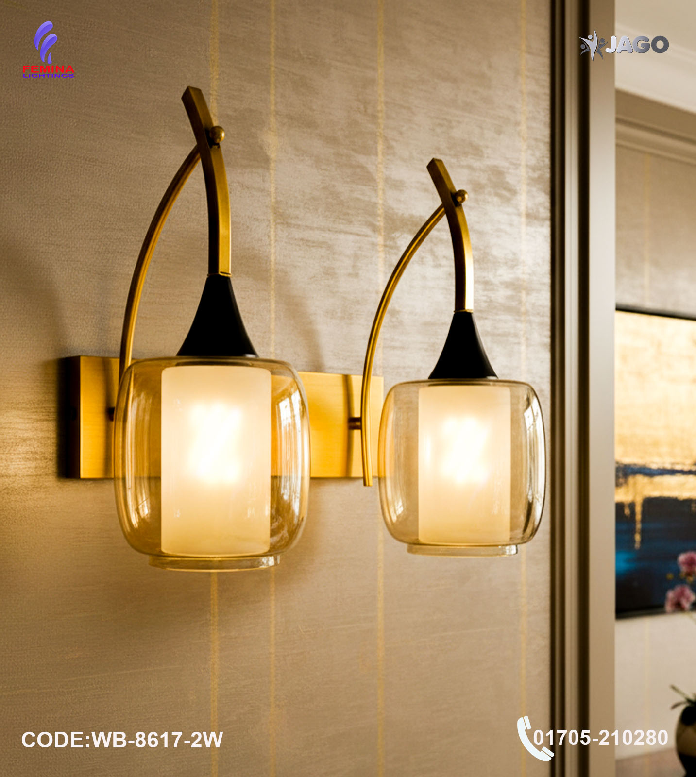 Enhance your interior with the elegant and modern Jago WB-8617-2W Antique Brass Wall Light, now available at Femina Lightings. Designed to blend contemporary aesthetics with functional lighting, this premium wall-mounted fixture adds a warm and sophisticated glow to any space.