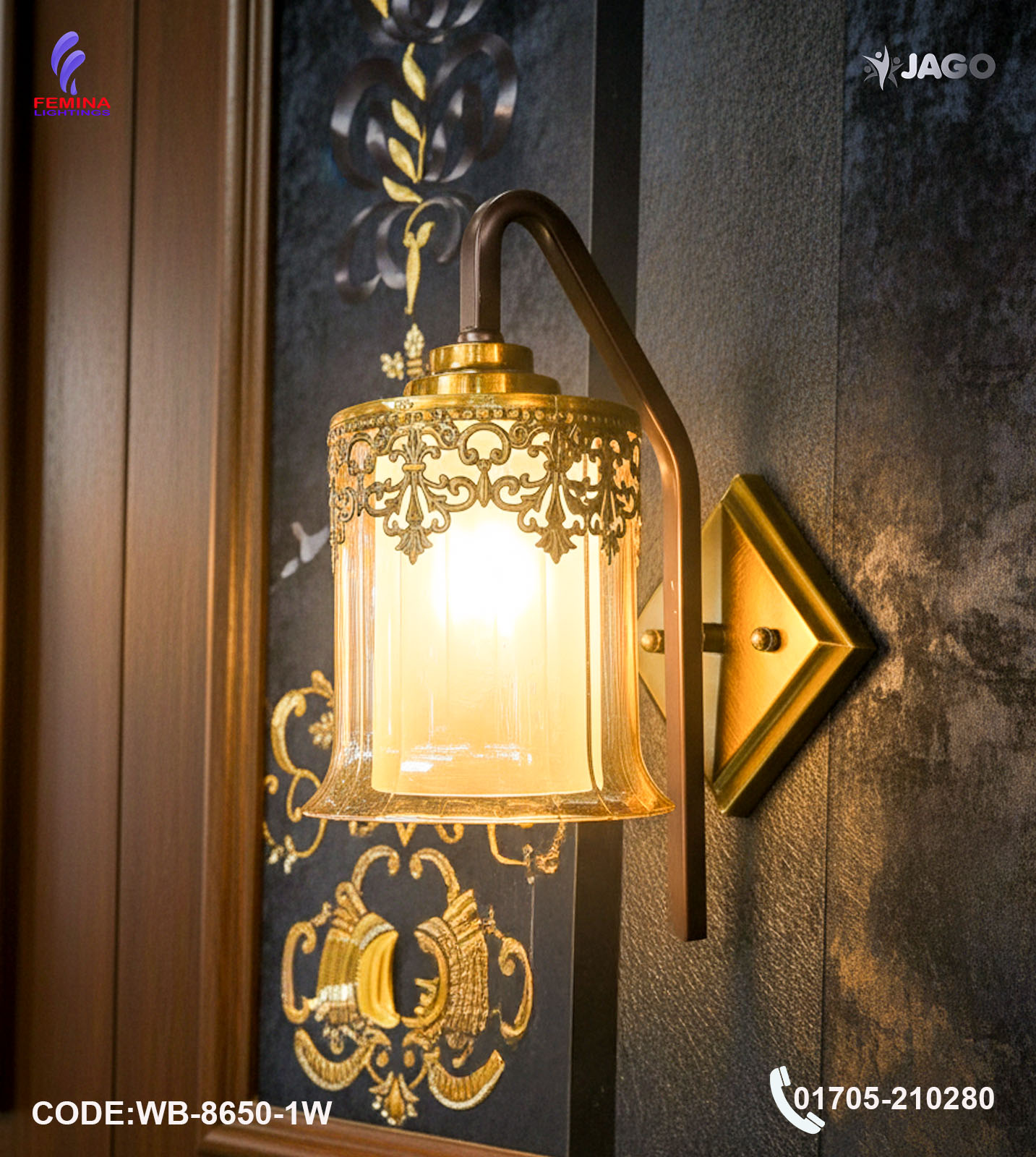 Enhance your interior with the elegant and modern Jago WB-8650-1W Antique Brass Wall Light, now available at Femina Lightings. Designed to blend contemporary aesthetics with functional lighting, this premium wall-mounted fixture adds a warm and sophisticated glow to any space.