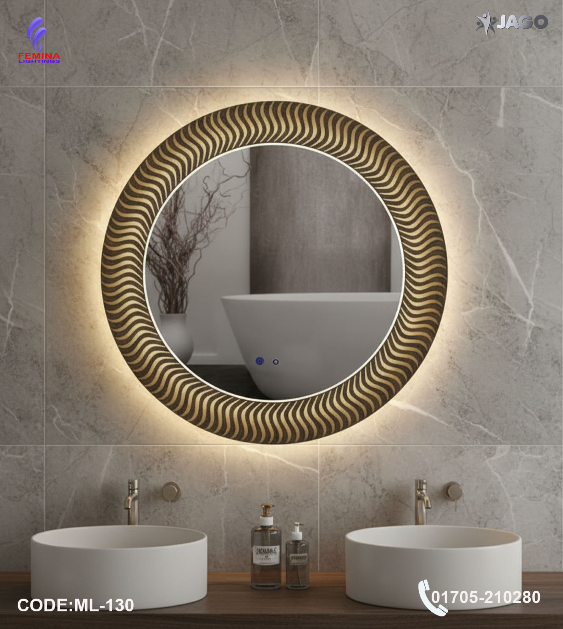 If you are searching for a premium LED mirror light in Bangladesh, a 24/24 inch bathroom mirror light, or a luxury crystal LED mirror light, this model from Femina Lightings is the perfect combination of elegance, functionality, and durability for modern living spaces.